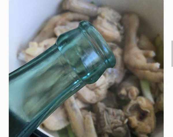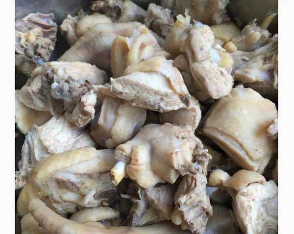 4.雞塊放入鍋中,加水,放入料酒,薑片去腥,煮熟撈出備用