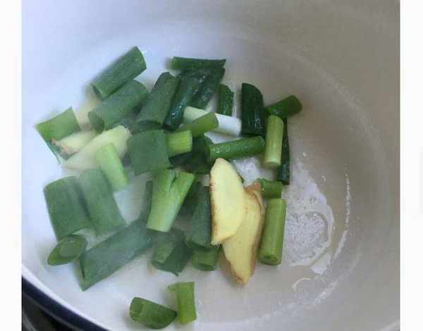 5.鍋中放油,放入蔥薑爆香、加入煮熟的雞塊煸炒均勻