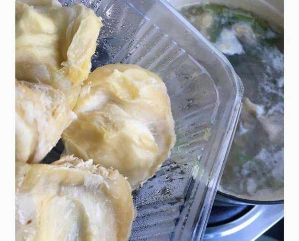 榴蓮雞湯,煲的過程中不需要放過多的香料,盡量保持最原始的味道。