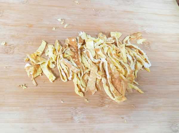 首先,大鐵鍋加水,水滾時可以適當加入涼水待用。用鐵皮自坐一個底部凸起的圓形鐵皮盤叫旋子,洗凈後,在底部刷少許油。旋子中盛入少量土豆淀粉水,然後坐在鍋的水面上,正轉、反轉幾圈,使旋內漿水攤鋪均勻。等粉漿遇熱凝結成白色時,旋子傾斜。使鍋中的水註入旋子內,這時可以看到粉皮逐漸由白變為透明,將水倒出,等1分鐘後將熟透的粉皮取出。投入冷盆中,涼後撈出,鋪平迭好,控幹水分。