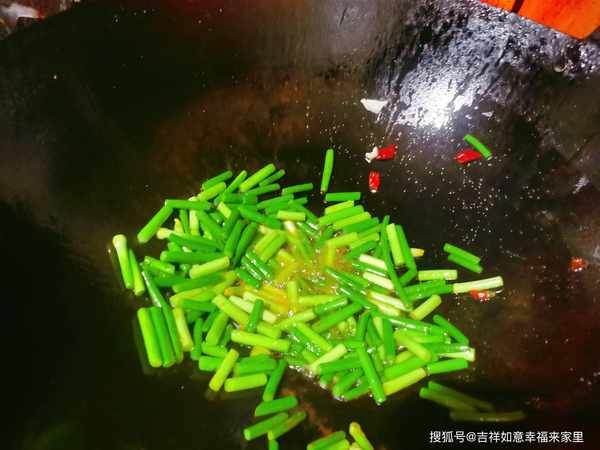把蒜苔清洗幹凈後,切段,放入盤中備用,碗中打入幾顆鮮雞蛋,攪拌均勻,備用,食材都準備好之後,鍋中放油,油熱後放入幹辣椒段和蒜苔,加入鹽,一起炒至蒜苔斷生後再炒一會,加入攪拌均勻的蛋液,倒入蒜苔裡面,等待蛋液凝固後,翻面煎熟,煎至兩面金黃即可,這樣一道簡單又美味的蒜苔煎蛋就做好瞭。
