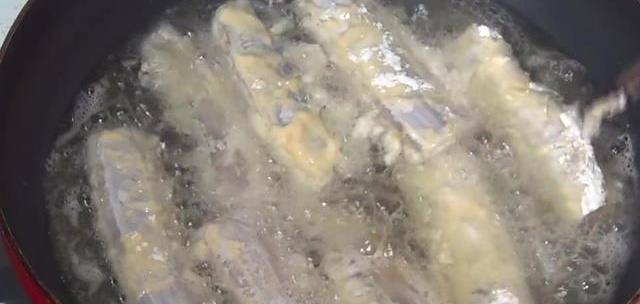 接著先把帶魚裹一層面粉,裹完面粉後再裹一層蛋液,最後再把帶魚裹一層面粉,果滿三次以後把帶魚單獨擺放備用,其他待遇都是按照此方法裹好,好全部補好後開始下鍋。鍋內加入適量植物油把油門燒至三成熱,由熱後轉小火,下入魚段。炸帶魚是要全程開小火,防止外糊裡生的情況,先把帶魚一面煎三分鐘,三分鐘後帶魚表面進行,接著把帶魚翻面繼續煎另外一面,全程大約6~7分鐘炸至表面焦黃後控油撈出。最後在炸好的帶魚表面撒一些椒鹽美味跡象。好瞭,我們膠香四溢的香煎帶魚完成,外表金黃酥脆,魚肉鮮美入味,希望您能夠喜歡。
