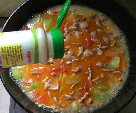 先加入適量水,調至大火燒開後煮約3分鐘,下入上漿好的豬肝,豬肝變色後放精鹽、胡椒粉調味。