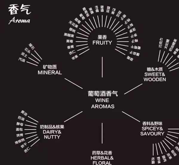 葡萄酒的香氣非常復雜精妙,多姿多彩,包括果香、花香、香料香、藥草香和礦物質香氣等等。紅酒資深愛好者通常根據香氣也可以分辨葡萄酒的種類以及品牌。