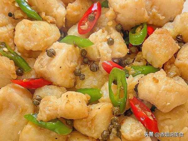 3、鍋中底油,放入蒜末、青線椒、小米辣和花椒炒出香味,再放入巴沙魚翻炒均勻,加入生抽、黑胡椒粉調味,翻炒幾下炒入味即可出鍋裝盤開吃。