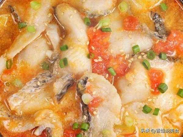 3、煮至番茄軟爛,就可以放入魚片煮熟,煮熟後撒上白芝麻和蔥花即可出鍋開吃。