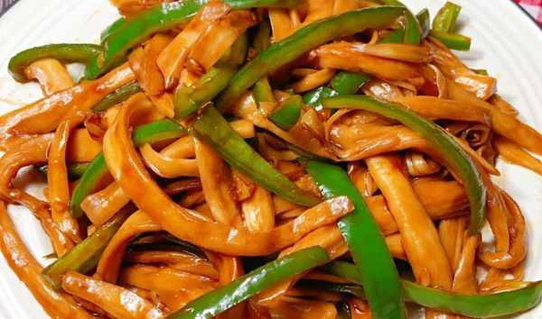 3、加入切碎的青椒翻炒均勻。用大火煎2分鐘,直到醬汁收幹。√