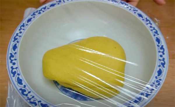 4.面發好瞭,取出來,揉一會兒排氣,搓成長條,再切成小面劑。