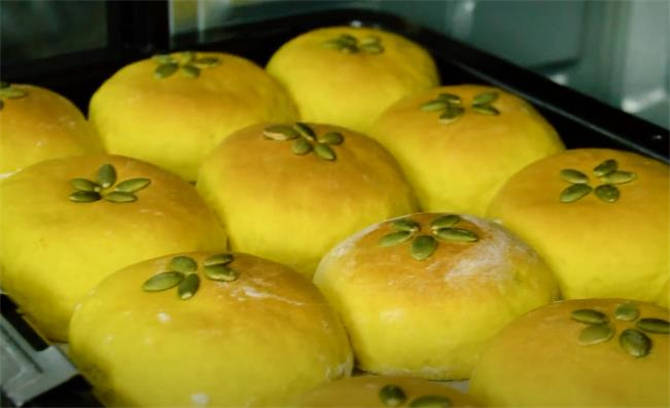 9.烤箱預熱好之後,上下火160度烤上25分鐘,南瓜豆沙包做好瞭取出來。