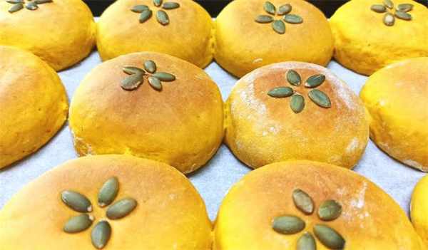 南瓜、白糖、普通面粉、酵母粉、鹽、溫水、豆沙餡、南瓜籽仁