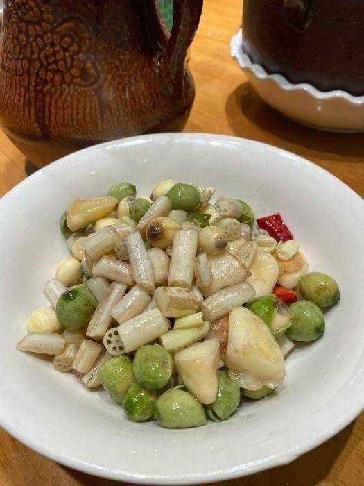 炒蓮米,新鮮的蓮子搭配藕尖,整體口感比較爽口 ,裡面的蓮子清甜,藕尖是那種清爽又脆的,這道菜因為食材難得,不是能常吃得到。