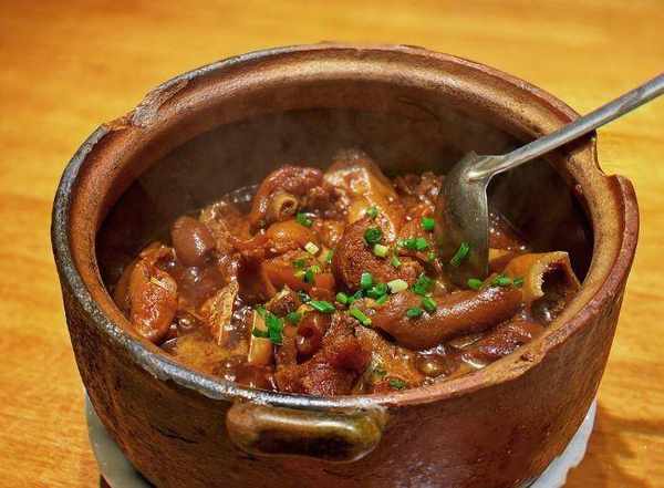 砂鍋豬腳,這個菜推薦一定要點,豬腳很爛糊,醬汁油脂豐腴,一咬就是骨肉分離,砂鍋燉得香氣十足,裡面的湯汁拌飯,下飯一絕!