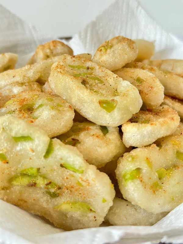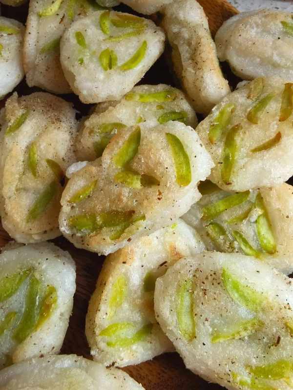 [4] 煎好後放廚房紙上控控油,撒上鹽或辣椒面或椒鹽或燒烤料或白糖吃,咸吃甜吃皆可~