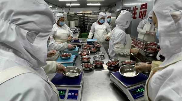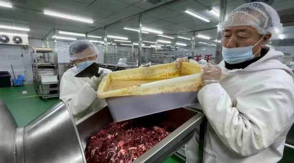走進齊函楊佳清真肉業有限公司的加工車間,切肉、拌肉、裝袋、打包、運輸等一系列環節,都在有條不紊進行中,且嚴格執行企業各項標準:攪拌時間30分鐘,速凍庫恒溫-35℃,精瘦肉和肥肉8比2配制……過年最好的時候,日產能達100噸。