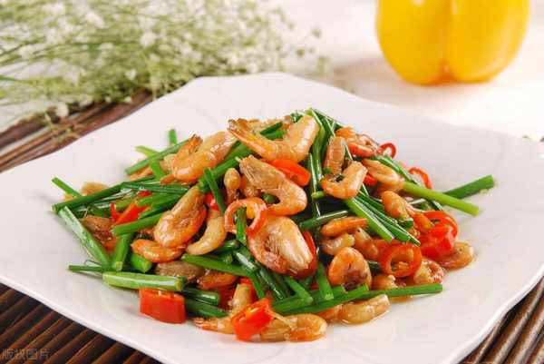 4. 韭菜炒蝦仁:這是一道非常美味的韭菜菜肴,將韭菜和蝦仁一起炒制,口感鮮嫩,非常適合搭配啤酒食用。做法也非常簡單,隻需要將蝦仁洗凈,加入適量的鹽和韭菜,然後炒熟即可。