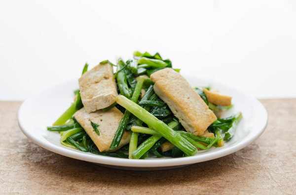 2. 韭菜炒豆腐:這是一道非常健康的韭菜菜肴,將韭菜和豆腐一起炒制,口感清爽,非常適合夏天食用。做法也非常簡單,隻需要將豆腐切成小塊,加入適量的鹽和韭菜,然後炒熟即可。