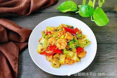 食材:大蝦、土雞蛋、包菜、蒜末、白胡椒粉。