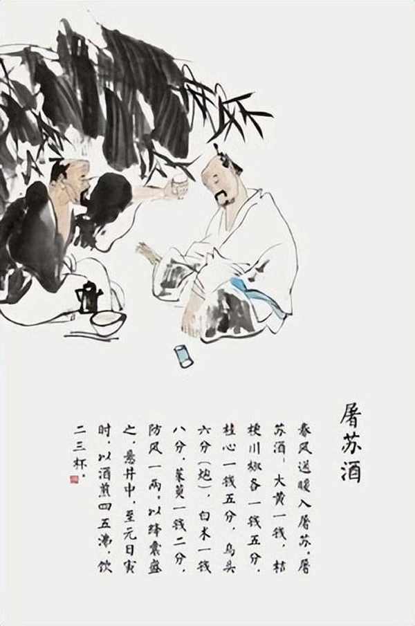 在中國,歷代文人騷客在飲酒助興後都會趁著醉意留下諸多墨寶名篇。其中,與屠蘇酒有關的詩賦竟多達一百四十六首。王安石、陸遊、鄭清之、柳應蘇等著名大傢紛紛留下瞭千古佳句。近代革命傢董必武先生也飲罷美酒,作出“舉杯互敬屠蘇酒,散席分嘗勝利茶”的豪邁之詩。由詩詞可見,屠蘇酒在中華酒文化中的崇高地位無與倫比,實屬酒中奇葩。