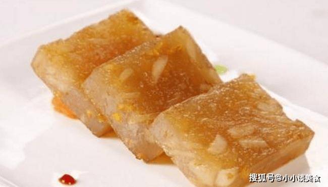 第四種:馬蹄糕,也是我國的傳統糕點。用荸薺制成的美食。成品看起來很小,顏色是青色,嘗起來像蜂蜜一樣甜。那是宮裡的一種糕點。馬蹄糕味道很好,不比西點差。