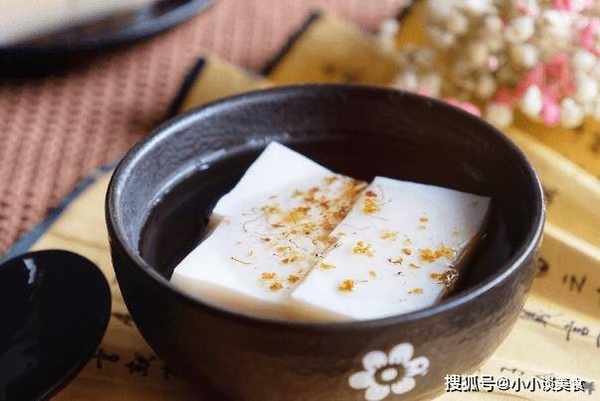 第三種:杏仁豆腐,這也是一種很好吃的糕點,用甜杏仁做的糕點,因為成品像豆腐,故名。杏仁豆腐外表潔白,點綴著一些桂花香。它看起來真的很有價值,而且味道清涼,甜美和清爽,非常棒。
