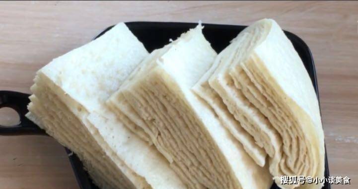 3、將蒸好的酥皮放入鍋中稍煮片刻,然後從鍋中取出,切成自己喜歡的塊狀。用這種方法做出來的酥皮層次分明,松軟可口,比外面買的好吃多瞭。如果你吃夠瞭饅頭或煎餅,你可以用這個方法做千層餅。它很好吃,也很容易準備。蛋糕的層層薄如紙,真的很好吃。