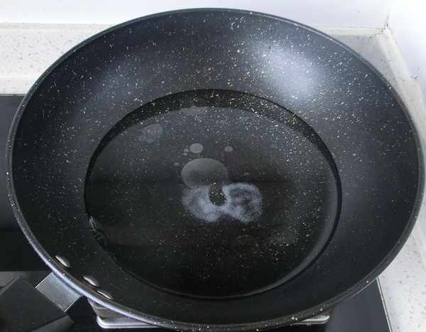 6.鍋加油燒熱,下入臘肉絲翻炒,將臘肉絲翻炒出油。