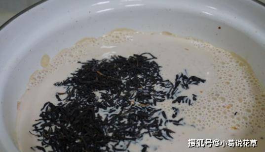 第二步:糖變色後,倒入牛奶和適量茶葉,小火煮沸,茶葉從浮在上面慢慢沉下去。