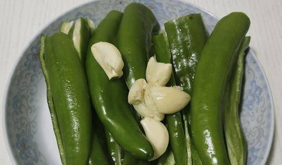 第一步:將青辣椒洗凈後,對半切開。如果你不喜歡辣椒籽,你可以把它們去掉。皮薄、有胡椒香味的辣椒更好。將蒜瓣壓碎備用。