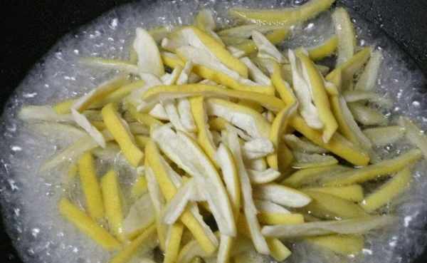 第三步:浸泡3小時,然後連續換幾次水,直到浸泡柚子皮的水不發黃為止。取出並擠出水。