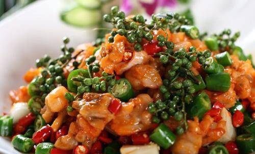 原料:雞精、蔥、薑、鹽、味精、醬油、青椒兩個、青椒、小米椒、薑末、蒜末、幹辣椒節、幹辣椒、生菜、醬油1匙咸。,成人醋1湯匙,糖½茶匙,鮮湯,雞粉