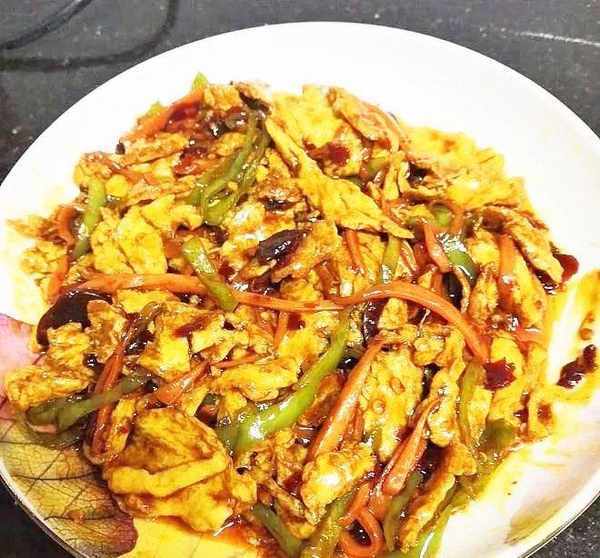 原料:雞蛋5個、黑蘑菇適量、洋蔥適量、青紅椒各適量、豆瓣醬(牛肉辣椒醬)、蒜茸、醬油、糖。、醋、醬油、果汁、料酒等地區適宜;