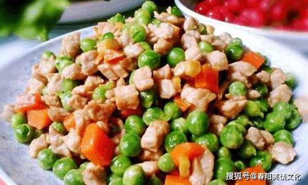 配料:瘦豬肉200克,豌豆100克,大蒜2瓣,醬油1/2勺,白糖1/3勺,淀粉1/3勺,料酒1/2勺,1/鹽2勺,雞精1/4勺