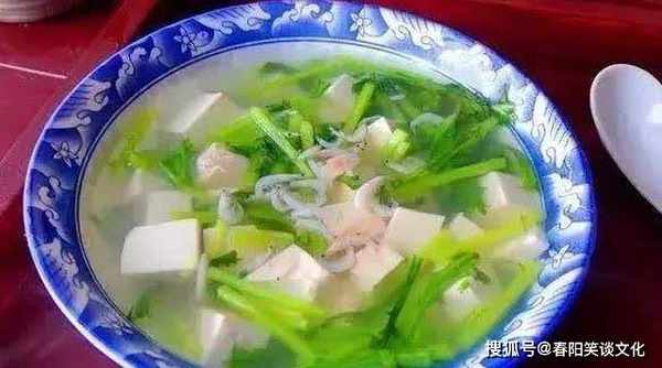 原料:菊花250克,豆腐1塊,蝦皮1湯匙,香油1湯匙,鹽適量,薑1片