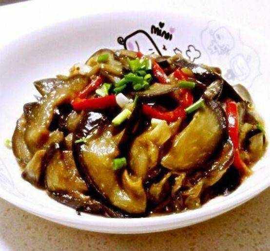 7、茄子煮熟後,邊煎邊洗凈。上菜前淋上切碎的大蒜,根據需要加鹽,加鹽炒香。