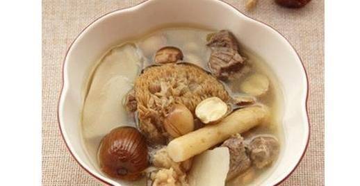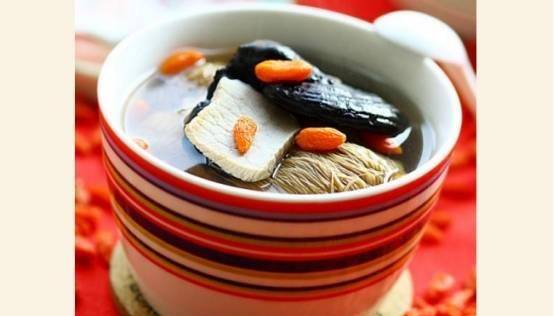 原料:幹靈芝50克,幹猴頭菇40克,枸杞子20克,肉片100克,白糖5克,雞湯500克,水800克,洋蔥適量薑、鹽3克。