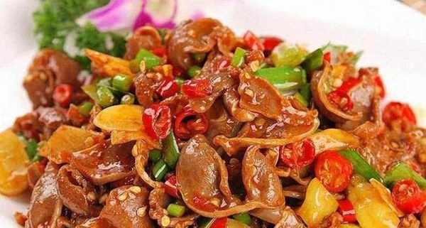 3、鍋內倒入油,加入豆瓣醬炒至紅油出,加入薑、蒜、鹽、胡椒粉炒香,下雞內臟炒至生。加少許料酒邊炒邊炒,下芹菜炒至生,最後加少許糖和鹽。