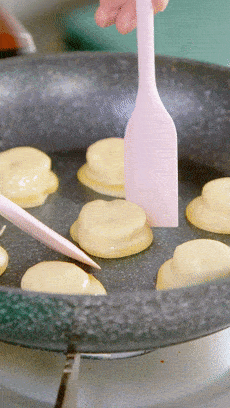 因為外面隻有一層面糊,所以小餅熟得是特別快的,做的時候我們也要及時翻面,成功率更高。