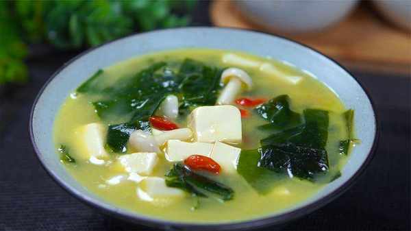 3、魚湯跟牛奶一樣又濃又白,再放入裙帶菜、海鮮菇和美豆腐,調味放適量的鹽即可,繼續再煮個兩三分鐘,鯽魚湯就做好瞭,鮮香味濃,好喝又營養。