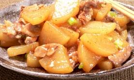這是一種由蘿卜和切碎的豬肉制成的便宜、簡單且非常美味的菜肴。主要成分是蘿卜,但它具有可以用作主菜的外觀,味道和體積。如果你在煎鍋裡燉豬肉上衣和蘿卜很容易!蘿卜和豬肉搭配得很好。