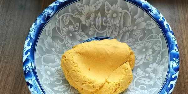 3,少量多次地往南瓜泥中加入糯米粉,揉成偏軟不粘手的面團。