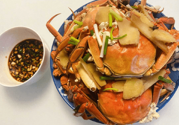 4.將蒸熟的螃蟹解繩盛盤,即可沾汁食用。