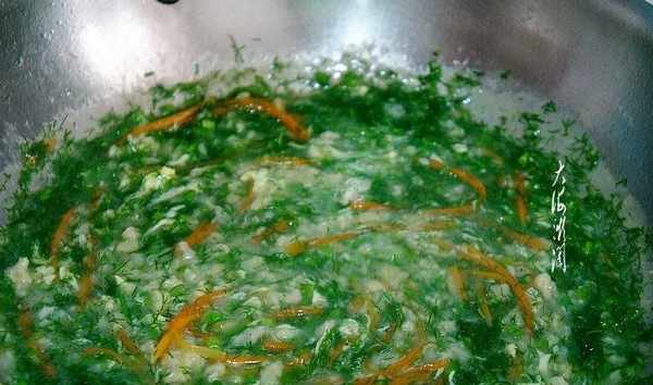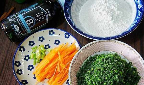 茴香切末,胡蘿卜切絲,蔥去皮洗凈切末。