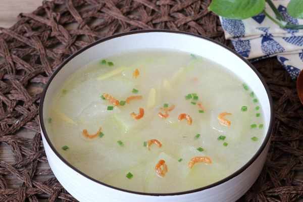 冬瓜性寒,有清火消暑、消腫利尿的好處。每100克冬瓜的熱量隻有12千卡,卻含有0.8%的粗纖維,是不可多得的減脂蔬菜,三伏天多吃一些冬瓜,可以排除身體裡多餘的水分,有助於瘦身,可以又瘦又美的度過夏天。煮香芋冬瓜,加一點蝦米煮一鍋湯,營養好喝又鮮美。今天就給大傢分享一下香芋冬瓜蝦米湯的做法,需要準備的食材有:香芋冬瓜三分之一個,蝦米一小把,生薑一塊,蔥花適量,食用油一點點,鹽適量。