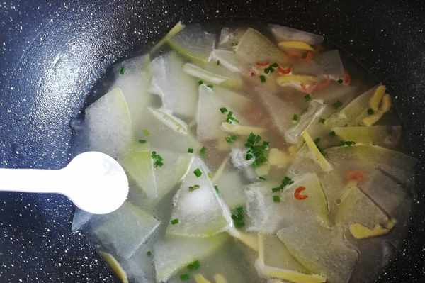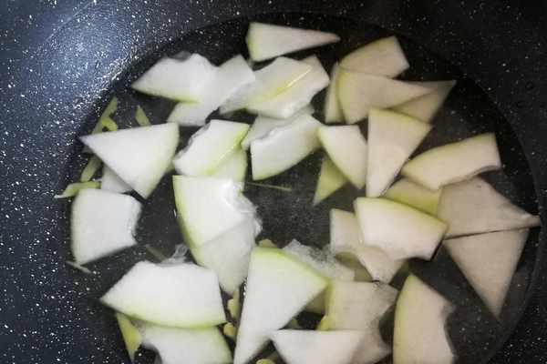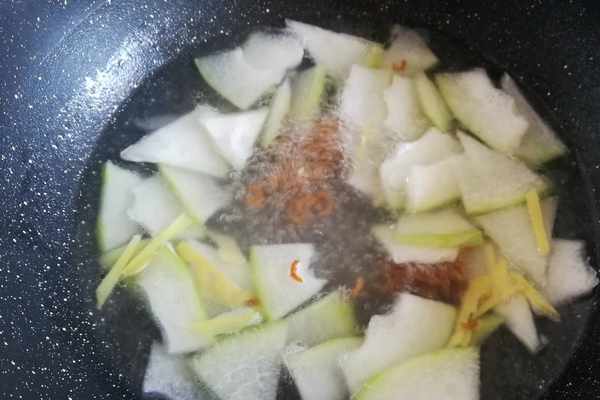 4.鍋裡加適量的水大火燒開,放入薑片和冬瓜,放一點點食用油。