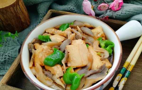 食材用料:挑選嫩豆腐一大塊,準備一大朵鮮蘑菇(很多地方叫它平菇和白蘑菇,菌菇要非常新鮮,沒有出現白色物質,摸起來非常濕潤,聞起來清香無異味),準備一個青椒,幾根新鮮小蔥,生薑10克左右,生抽2勺,蠔油一勺,若幹清水(或者選擇高湯),精細食鹽,一些白胡椒粉,其他佐料。