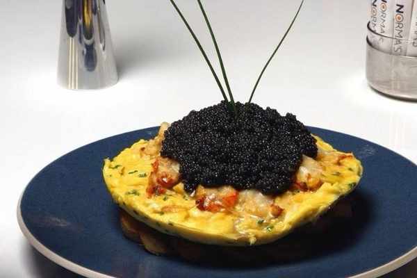 此款意大利蛋餅足足用瞭10盎司的Sevruga魚子醬、一整隻龍蝦。再以普通蛋餅的做法,加上細香蔥、奶油和6顆雞蛋烹調而成。真是聽聽都覺得奢侈。