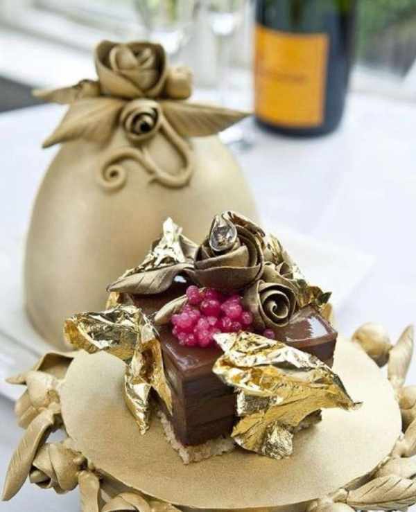 名廚MarcGuibert以彩蛋形狀為靈感,創作瞭這款黑佈丁。以食用金箔包覆,再以層層香檳果凍堆疊。不過重點還是因為它放瞭兩克拉鉆石!一時間,竟不知道是鉆石裝飾瞭甜品,還是甜品襯托瞭鉆石。