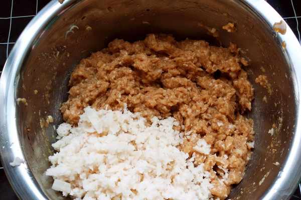 2.蓮藕水分含量特別大,但是不用用鹽殺水,隻要用擦子一擦就會把水分擦出來,用蓮藕的水分代替清水打入肉餡中,會使肉餡更加的嫩滑並且帶有蓮藕的清香。