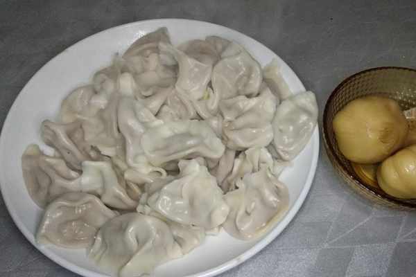 7.鍋中燒水,水中加入少許鹽防止餃子黏連,水開後下入餃子,用勺背推動餃子使餃子在鍋中轉起來,蓋上鍋蓋煮三個開點三次涼水,待餃子全部鼓肚浮起後即可撈出食用。