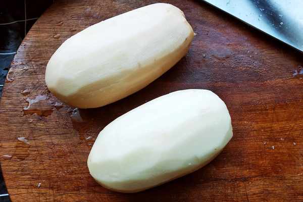 2.蓮藕洗凈後刮去外皮,切去兩頭的根再次清洗幹凈。
